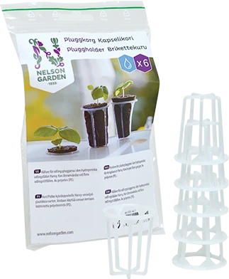 Refill-produkt til den hydroponiske dyrkningskasse Harvy. Brikettekurvene anvendes som holdere til dyrkningsbriketterne. Kan genbruges til flere dyrkninger. Af polypropen (PP).