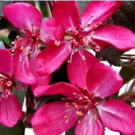 Træet blomstrer i april-maj måned med små, smukke rosenrøde blomster og får små røde frugter i november.